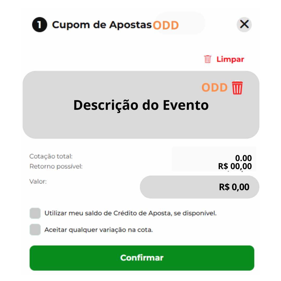 Retorno possível: Estima o valor que você pode ganhar se a aposta for bem-sucedida (valor da aposta x cotação total).