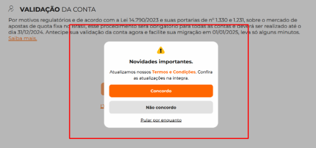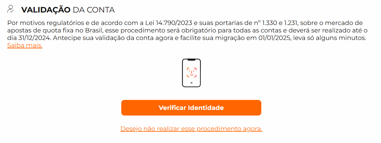 Você não poderá realizar apostas ou transações financeiras;