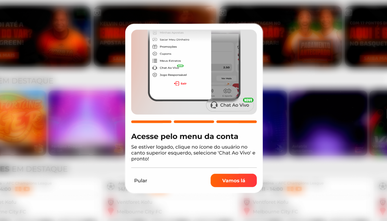 Se você já está logado, clique no ícone do usuário no canto superior esquerdo e selecione a opção Chat Ao Vivo.