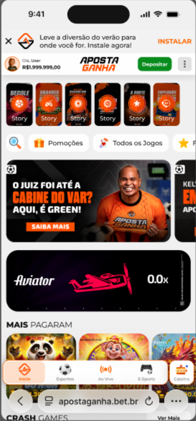 Acesse o Site: Entre no site da Aposta Ganha pelo seu navegador habitual no iPhone.