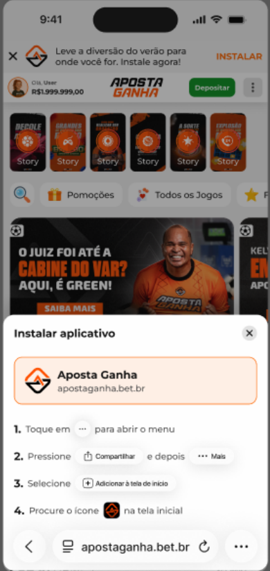 Quer ter acesso rápido às suas apostas direto da tela de início do seu iPhone? Agora ficou mais fácil! Preparamos um passo a passo para você instalar nosso aplicativo PWA (um aplicativo leve que roda direto do seu navegador - Safari ou Chrome, sem ocupar espaço desnecessário).